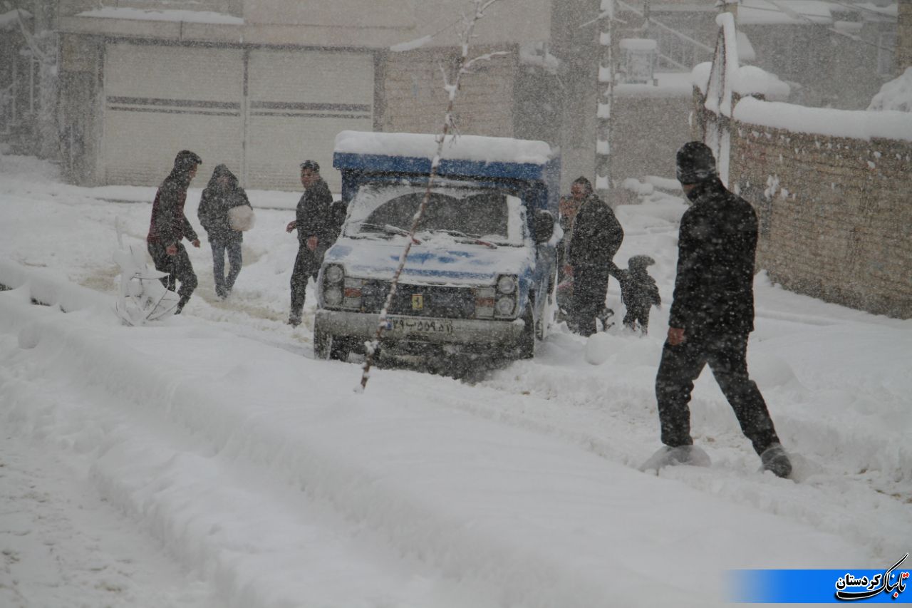 جمعی از مردم گرفتار در کوچه و خیابانهای پر از برف و یخ شهر خالی از مسئول سنندج