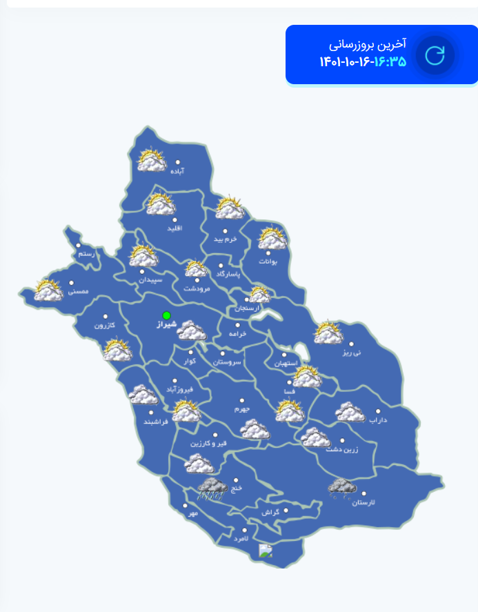 نقشه هواشناسی بعداز ظهر 15 دی فارس