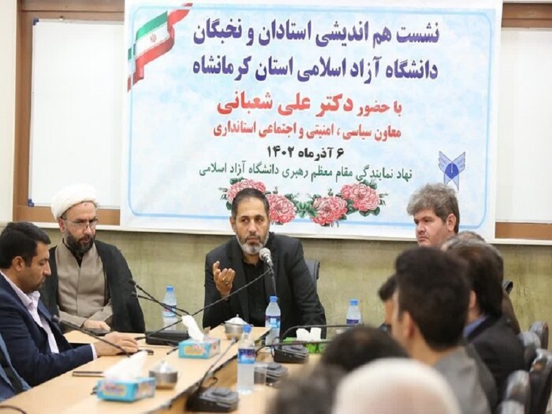 شعبانی ضمن استقبال از حضور اساتید دانشگاه آزاد در هیات اندیشه ورز استان گفت ما از حضور اساتید دانشگاه آزاد در هیاتهای اندیشه ورز و همراهی و همفکری آنان خرسند میشویم و من به شخصه سعی خواهم کرد در حوزه مدیریت خودم این ارتباط با اساتید را توسعه دهم و در همین راستا بزودی یک جلسه مشترک با رسانهها و اساتید جامعه شناسی، علوم سیاسی و حقوق با موضوع بررسی مشکلات کرمانشاه برگزار خواهیم کرد.