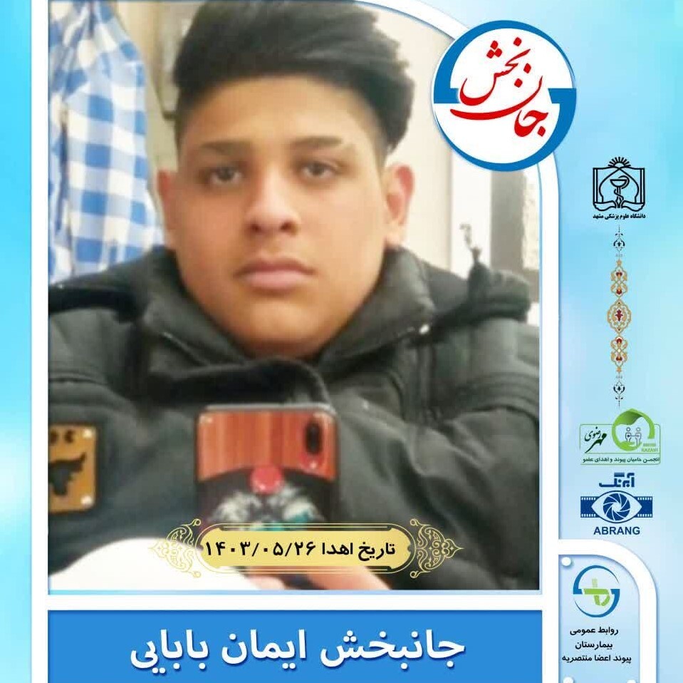 دکتر ابراهیم خالقی خاطر نشان کرد : کلیه های زنده یاد ایمان بابائی در  بیمارستان منتصریه  به خانم  ٢۵ ساله ساکن خواف و آقای  ۴٣ ساله ساکن بردسکن  پیوتد و اهدا شد .