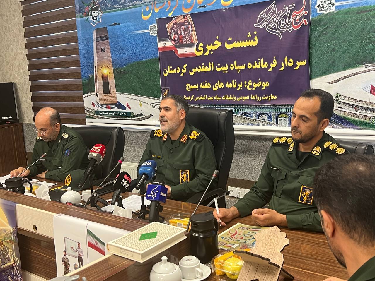 جانشین فرمانده سپاه بیت‌المقدس به برنامه‌های هفته بسیج امسال در استان کردستان اشاره و عنوان کرد: این هفته با شعار «بسیج مردم، اقتدار ملی از ۳۰ آبان آغاز می‌شود و شامل هزار و سیصد و چهل برنامه با مشارکت مستقیم مردم و بسیجیان در محلات، مساجد و پایگاه‌های مقاومت است.
