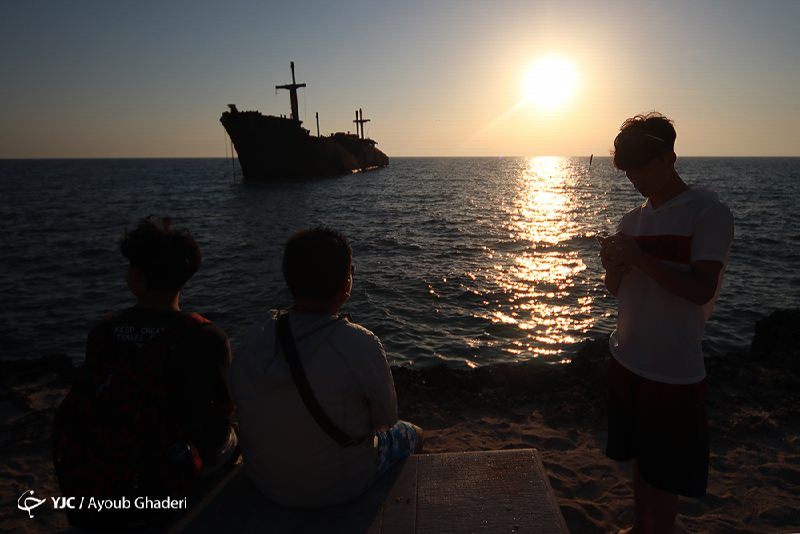 کشتی یونانی یکی از جاذبه‌های گردشگری جزیره کیش است.این کشتی در ۴ مرداد ۱۳۴۵ در نزدیکی روستای «باغو» به گِل نشست. این کشتی در سال ۱۳۲۲ توسط شرکت ویلیام همیلتون در گلاسکو ساخته شد. وزن کشتی در هنگام ساخت ۷۰۶۱ تن و طول آن ۱۳۶ متر بوده‌است. این کشتی بین مالکان انگلیسی و ایرانی مختلفی دست به دست شده بود و آخرین مالک آن یک یونانی بود. نام‌های کشتی به ترتیب «امپایر ترومپت»، «نچرالیست»، «کوروش پارسی»، «همدان» و در هنگام به گل نشستن «کولا اف» بوده‌است. علت به گل نشستن کشتی همچنان در پرده‌ای از ابهام است. اما تمام این سالها کشتی میهمان خلیج فارس است خلیج‌فارس (شاخاب پارس یا دریای پارس)نام آبراهی پراهمیت در آسیای غربی و منطقه خاورمیانه است که در امتداد دریای عمان و در میان ایران و شبه‌جزیره عربستان قرار دارد. مساحت خلیج‌فارس ۲۳۷٬۴۷۳ کیلومتر مربع است، و پس از خلیج مکزیک و خلیج هادسون سومین خلیج بزرگ جهان به‌شمار می‌آید. خلیج‌فارس از شرق از طریق تنگه هرمز و دریای عمان به اقیانوس هند و دریای عرب راه دارد، و از غرب به دلتای رودخانه اروندرود، که حاصل پیوند دو رودخانهٔ دجله و فرات و پیوستن رود کارون به آن است، ختم می‌شود.
