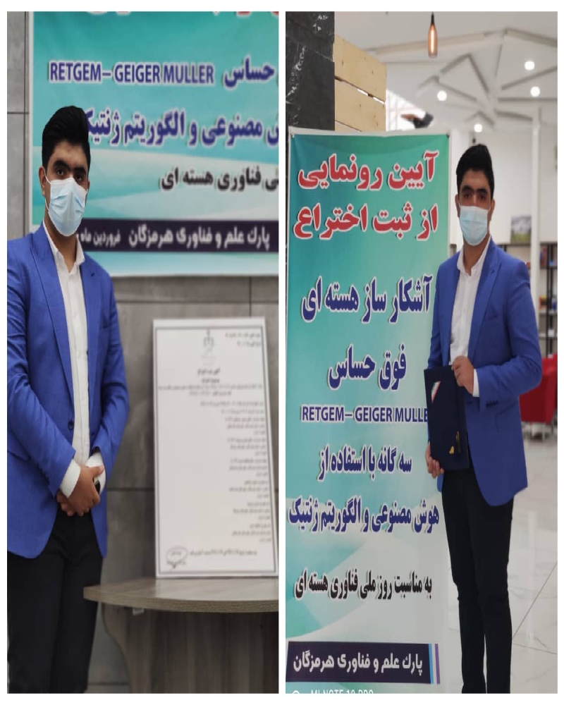وی ادامه داد : این دانش آموز پایه دوازدهم در قالب تیم پژوهشی هرمزگان متشکل از دکتر منصور فرهادی دانشمند سازمان انرژی اتمی کشور و فاطمه ادیم، توانستند این اختراع را ثبت نموده و باعث درخشیدن نام هرمزگان در سطج بین المللی شدند.